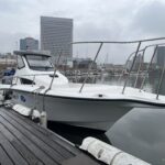 【1号艇追加オプション】 ハル&ハードトップサイド/ウレタンペイント(ライトグレー)、GARMIN GPSMAP923XSV2台設置(魚探、レーダー、Newpec、Fusion、スピーカー×4)、バウスラスター、陸電システム、バッテリーチャージャー、サブバッテリーチャージャー、航海灯、停泊灯、マリントイレ、デッキライト、サイドスポンソン、SEADEK、キャビンライト、アフトデッキシェード、リムーバブルアフトデッキテーブル、キャビン内フラットフロア、ビルジポンプ、ロッドホルダー、トローリングポスト、デッキウォッシュシステム、他