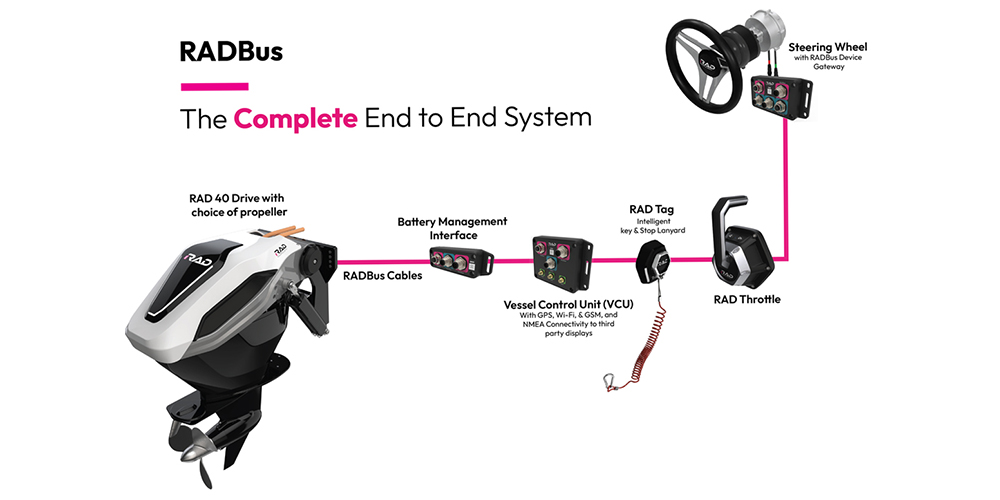 RADは海洋産業・調査・実験・防衛などで使用する特殊なロボット艇を数々製造してきたバックボーンがあります。最新の電子機器 電力制御 ソフトウェア そしてコネクティビティ技術を駆使し 優れた製品を生み出すことに情熱を注いでいます。現在は電動船外機「RAD40」「RAD120」・「RADバッテリー」・「電源コンソール」が LIN UP されています。